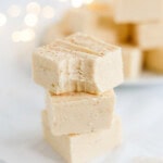 A no-fail eggnog fudge that comes together in minutes. This fudge is smooth, sweet, and full of festive eggnog flavor. It’s an easy holiday candy anyone can make!