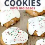 Soft and chewy, deliciously spiced molasses ginger cookies are gluten-free and topped with a mouthwatering vanilla frosting. These cookies are the perfect addition to any Christmas cookie platter.